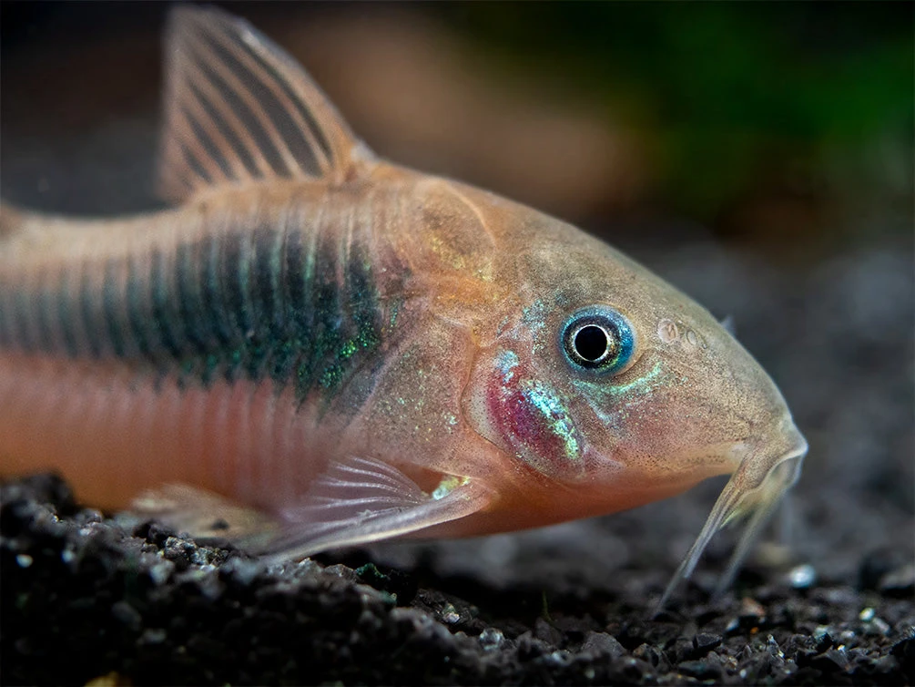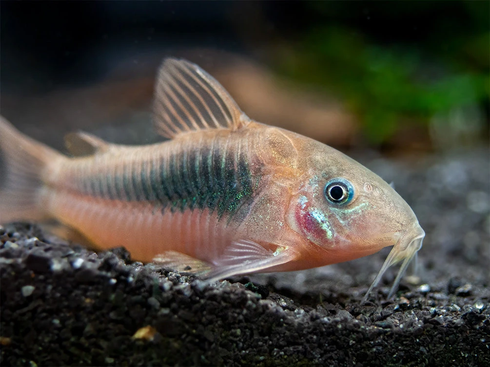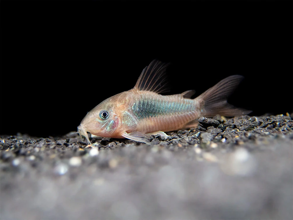 The Red Aeneus Cory Catfish is a very peaceful schooling fish that is compatible with most nano aquarium animals, including dwarf cichlids and angelfish. It might prey on small dwarf shrimp, but is safe with larger shrimp and most other peaceful ornamental invertebrates. It is a classic scavenger and will inhabit and feed at the aquarium floor, which should be comprised of sand or smooth gravel. Very coarse substrate can damage its delicate barbels and underbelly, so it should be kept in an aquarium with sand or very smooth gravel substrate. This fish is otherwise undemanding as it will accept most dry,frozen, and live foods. It is adaptable to most tropical freshwater conditions as long as standard regular maintenance is performed and sudden changes are avoided.