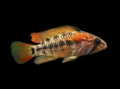Feeding is simple for the unfussy Red Shoulder Dwarf Cichlid. High-quality dry, frozen, and live meaty foods will all be readily accepted. Quality and variety are the keys to a diet that will ensure that this fish maintains optimal health and coloration.
