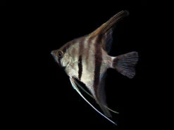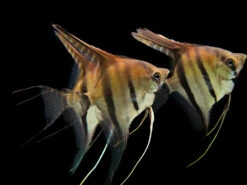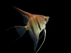 The Red Shoulder Manacapuru Angelfish (Pterophyllum scalare) is an uncommon geographic variant of the classic angelfish. It is distinctive by the red-orange coloration that it develops from its forehead to its dorsal fin. This shoaling cichlid is relatively peaceful compared to other members of the cichlid family. It also has a very thin, tall body unlike most other cichlids. The Red Shoulder Manacapuru is indigenous to Rio Manacapuru in Northwestern Brazil.Â