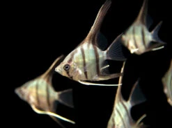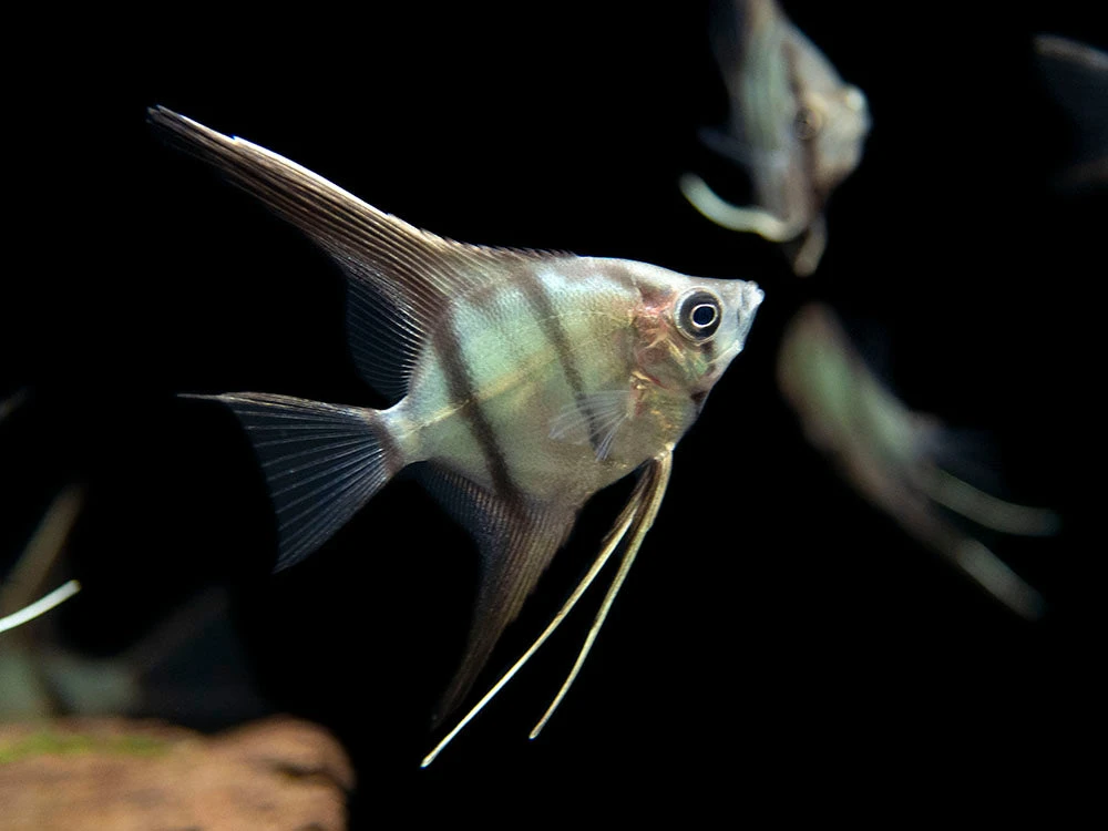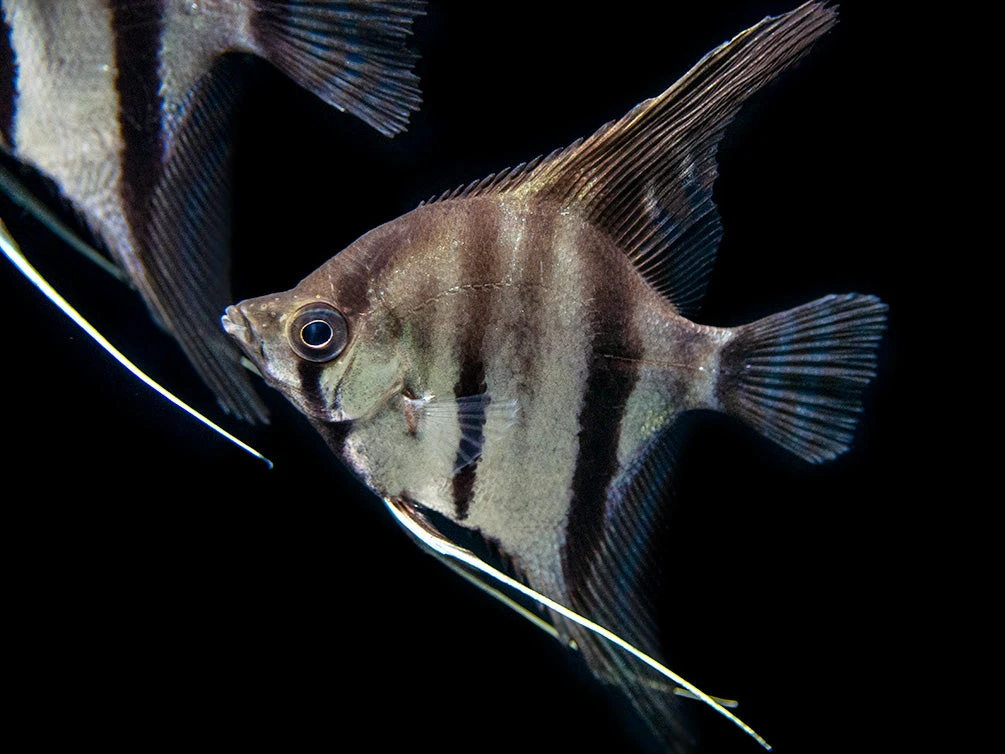The Red Shoulder Manacapuru Angelfish will thrive in a heavily planted aquarium with driftwood and/or rock formations and gentle water flow. It is not overly reclusive, but this fish strongly prefers the cover of plants and, due to its body shape, is not likely to seek refuge in rock caves and similar structures. The Red Shoulder Manacapuru Angelfish is generally compatible with other peaceful fish as long as it has plenty of space. Territoriality is typically at its peak during spawning. Dwarf shrimp and other small, delicate invertebrates should not be kept with the Red Shoulder Manacapuru Angelfish, but more durable, larger shrimp and snails could possibly make good tankmates in a large enough aquarium. If spawning is desired, tankmates of other species should be kept to a minimum or avoided altogether unless the aquarium is very spacious.