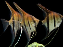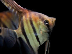Feeding is simple for the unfussy Red Shoulder Manacapuru Angelfish. High-quality dry, frozen, and live foods will all be readily accepted. Quality and variety are the keys to a diet that will ensure that this fish maintains optimal health and coloration.