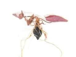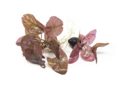 Red Tiger Lotus Aquarium Lily (Nymphaea zenkeri) is a remarkable red bulb plant that is native to Africa. It is known for its triangular leaves and, as its name states, its deep red coloration. It can grow to a very large size of 30+ inches tall and 20+ inches wide under optimal conditions. It will sometimes flower when kept in shallow enough water or emersed conditions, so it is a terrific plant for paludariums as well.