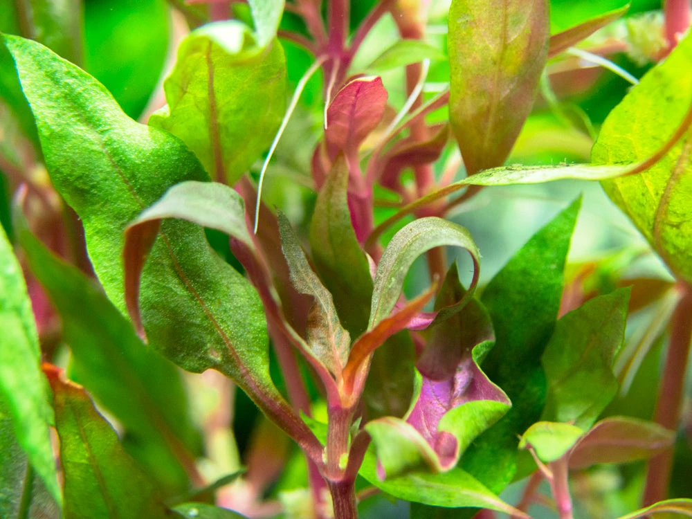 Scarlet Temple (Alternanthera reineckii) is a very popular foreground plant for the serious planted freshwater aquarium.  With proper care, this hardy, slow-growing plant can flourish and form a dense colony in aquariums of all sizes, and it is an excellent foreground plant for larger aquariums. Its bright red to maroon coloration is very uncommon among most aquarium plants, and its relatively simple requirements make it an excellent candidate to be a standout plant in the planted aquarium.