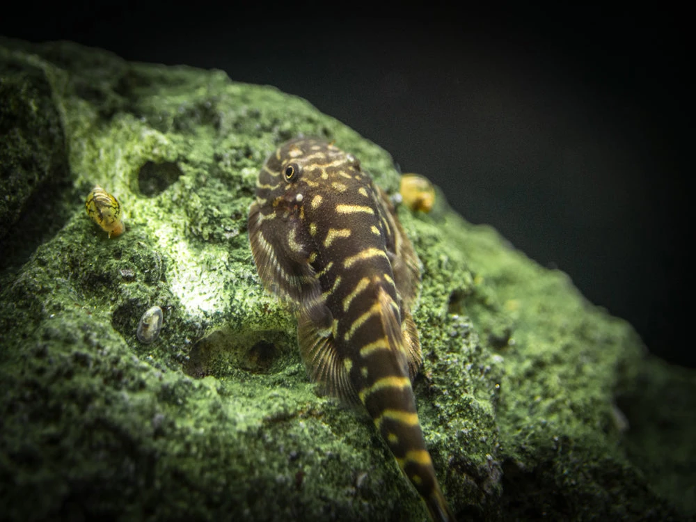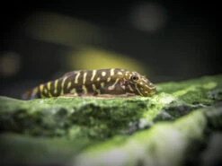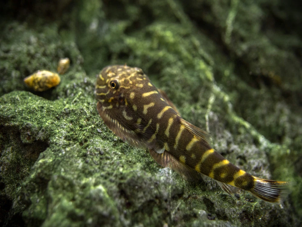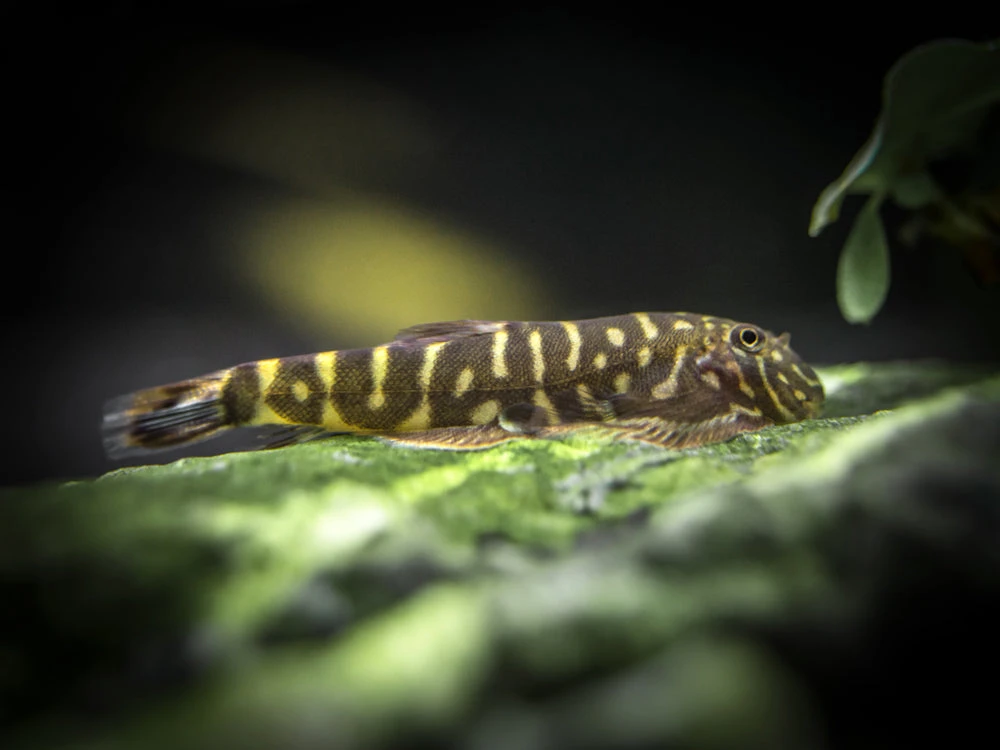 The Striped Borneo Sucker (Gastromyzon zebrinus) is a very interesting freshwater loach that is native to Malaysian Borneo. It is known for its gray body coloration, white spots, and occasional blue highlights on its fins, its peaceful yet outgoing demeanor, and its fascinating social behavior with members of its own species. This fascinating, peaceful fish is an algae and biofilm grazer that is an excellent candidate for the mature subtropical aquarium.
