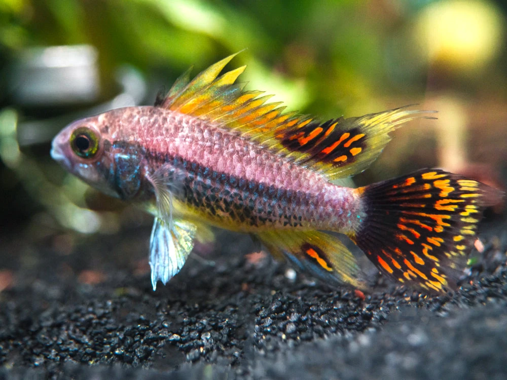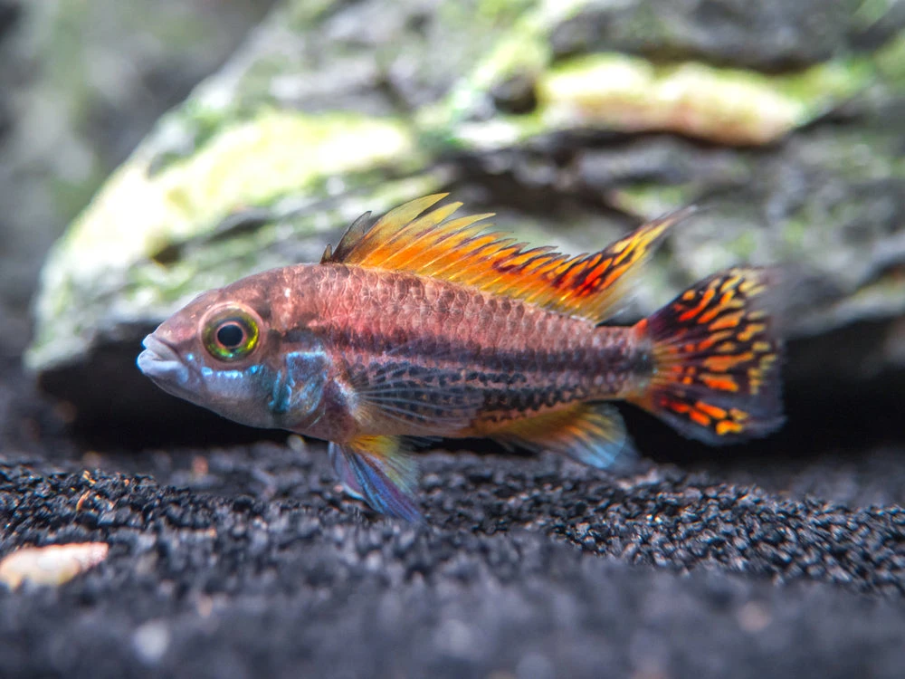 This striking dwarf cichlid is an incredible color morph of the Cockatoo Dwarf Cichlid (Apistogramma cacatuoides) and is certain to be the centerpiece of any aquarium!