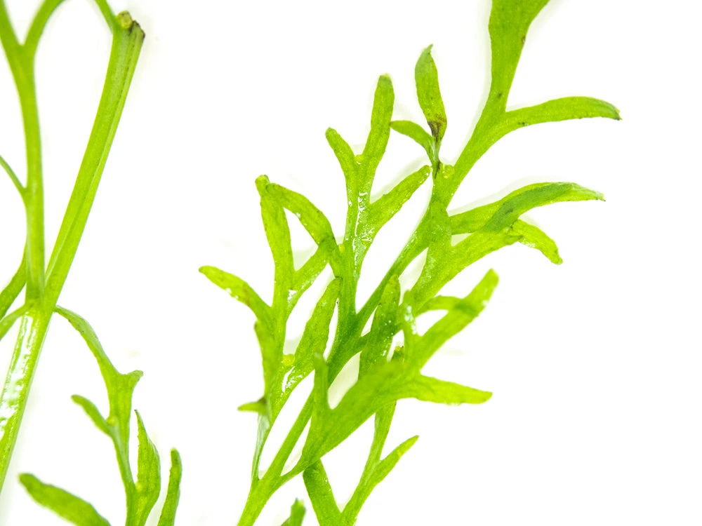Water Sprite is also known by the names Water Fern and Indian Fern. This lovely plant is not as delicate as it looks; it is extremely low-maintenance and easy to grow, making it a great choice for beginner aquarium hobbyists. It does not need special or high intensity lighting, and it can be kept in any freshwater aquarium with adequate lighting. It grows rapidly under the right conditions and removes waste from the water in your tank.