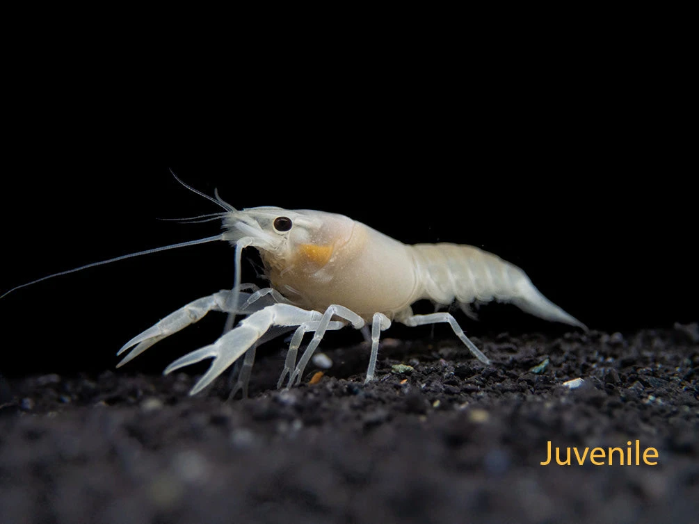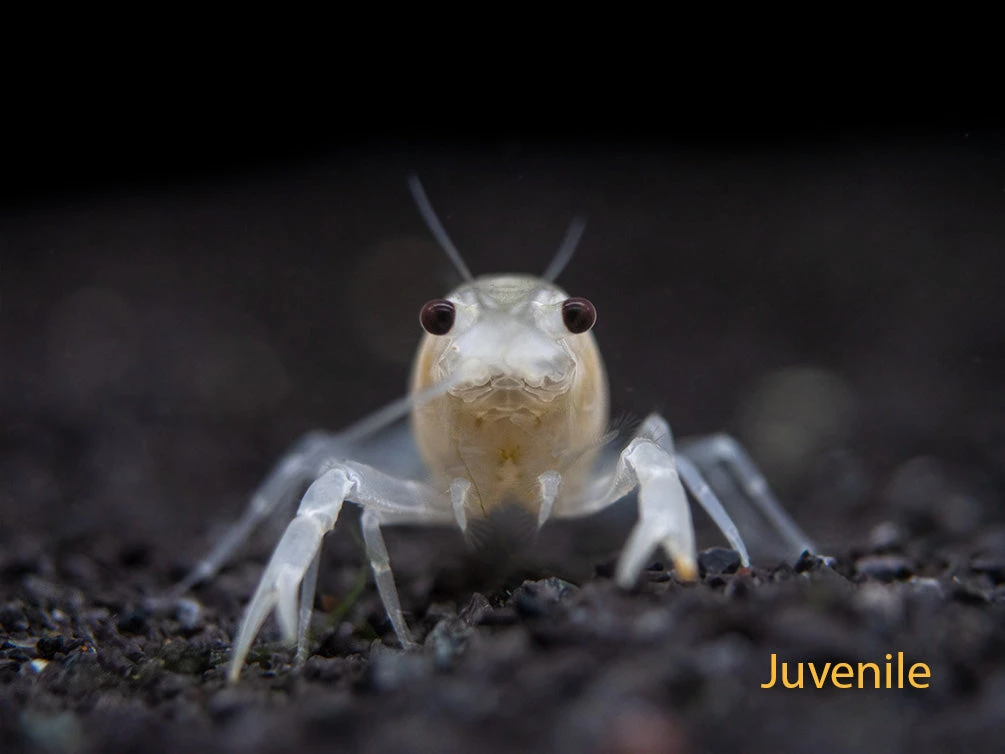 - 1 Juvenile White Specter Crayfish – 1/2 inch+ (A younger and smaller variant of the White Specter Crayfish at a lower price than our young adult specimens. This is a particularly fast-growing, hardy species and will usually grow well into adult size and coloration within 1 to 3 months. In the meantime, any customers who choose to go with a juvenile specimen can save some money and experience the excitement of watching their little crayfish grow!)