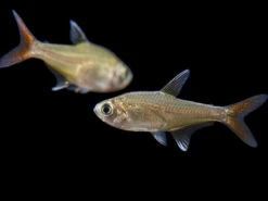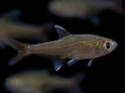 The X-Ray Tetra typically occupies the top and middle level of the water column, although it can often be seen swimming and feeding in the middle and bottom levels as well. It is safe to keep with other peaceful, small fish as well as peaceful dwarf and Geophagus cichlids. Adult dwarf shrimp are possibly safe tankmates as well, but adult X-Ray Tetras may eat small dwarf shrimp and their fry. Larger, peaceful invertebrates can also make good tankmates. This fish must be kept in groups of at least 6-8 specimens.