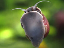 Mystery Snails are generally much more active and display more playful behavior than other types of freshwater snails. They are almost constantly scaling the walls of the aquarium, extending their antennae in search of food. They will climb up to the water line in to breathe air, so it’s a good idea to make sure the water line in your aquarium isn’t too high. When a Mystery Snail reaches the top of a wall or structure, it will often let go of the wall and glide rapidly downward until it crashes into plants or into the substrate below, often eliciting a “Weeee!” sound from any witnesses.